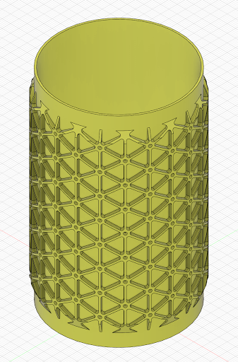 だいぶそれっぽい形になってきた。内径70mm、高さ120mm、スキン1mm、リブ2mm、くらい。